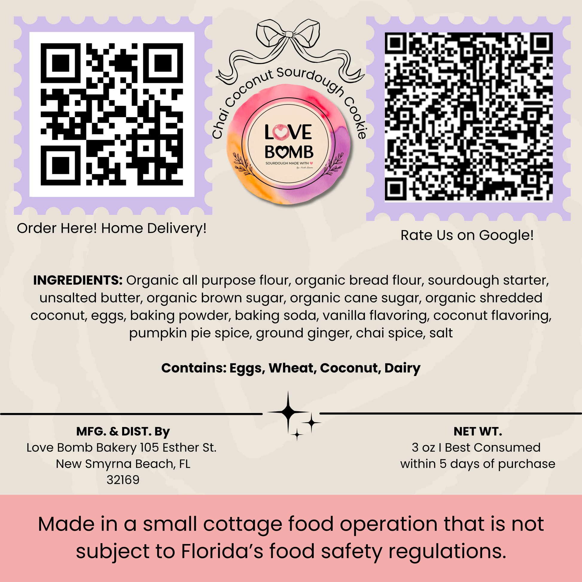 Always made with love by hand in Nicole Lenora's home kitchen these cookies are the final result of Love Bomb Bakery's test kitchen. This recipe was created from scratch and can't be found anywhere else making it a true Love Bomb original.