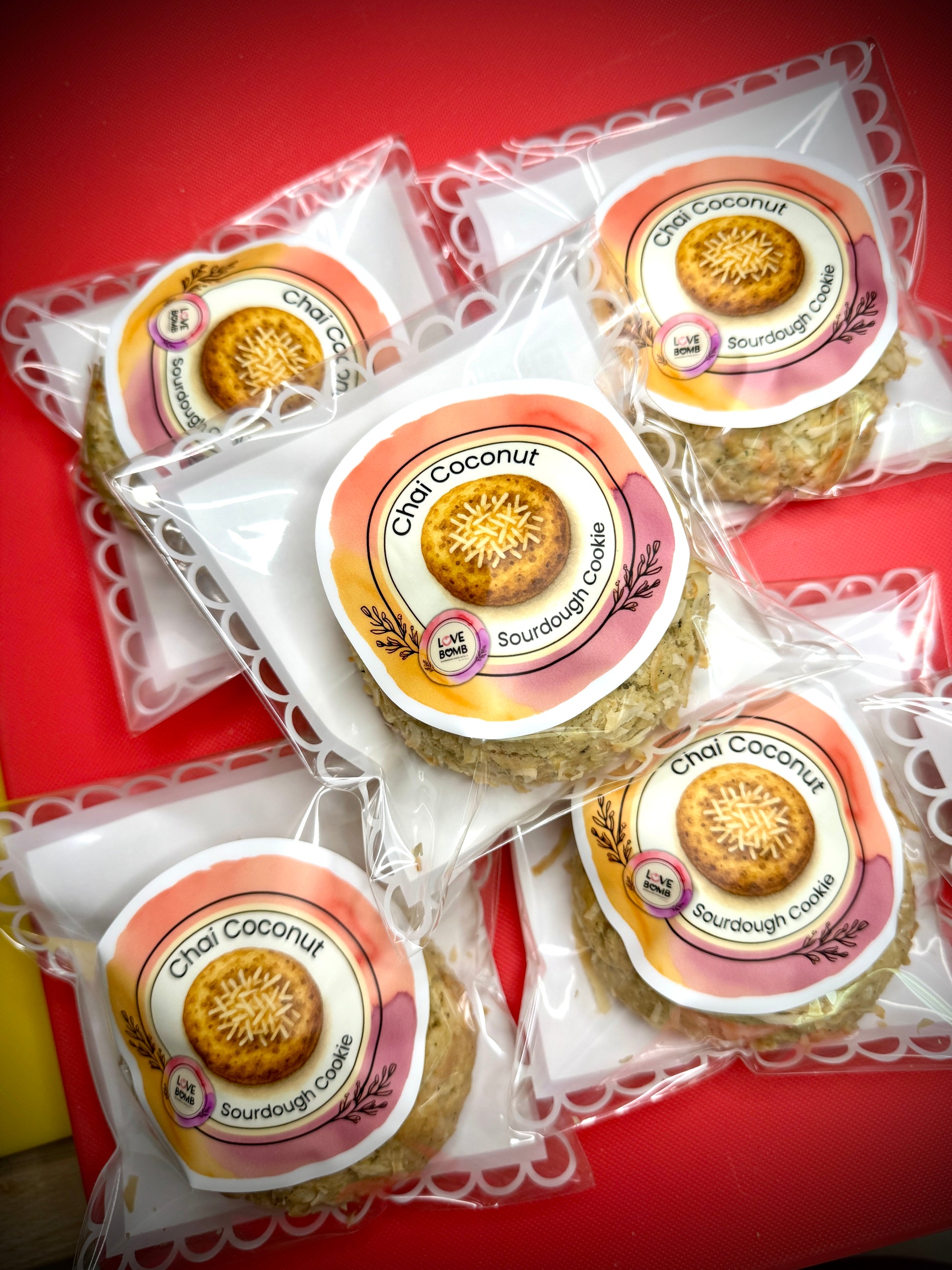 We woke up one morning craving a chai coconut cookie when we realized we never had a chai coconut cookie so we made one and boy, are they good! Imaging a bite full of your favorite spiced chai latte with the warm, tropical taste of coconut... Yum! Single grab-n-go cookies are individually wrapped making them perfect for gifting, corporate events and birthday party give-aways.